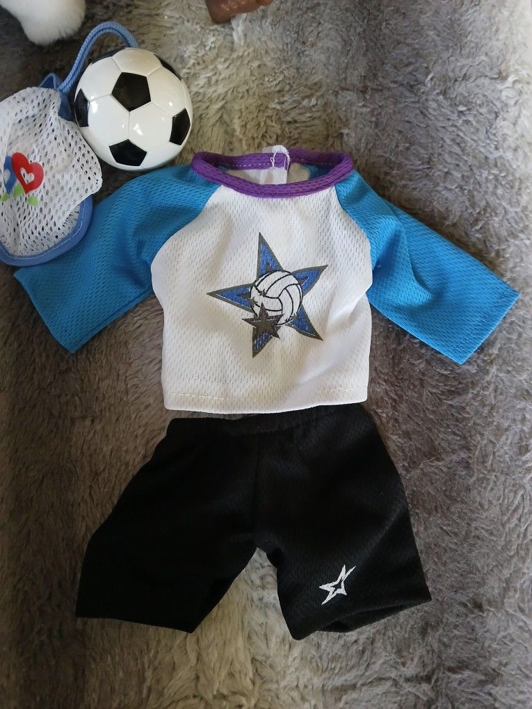 Soccer outfit fits all 18inch dolls it comes with ball and ball bag in good condition from a smoke free home