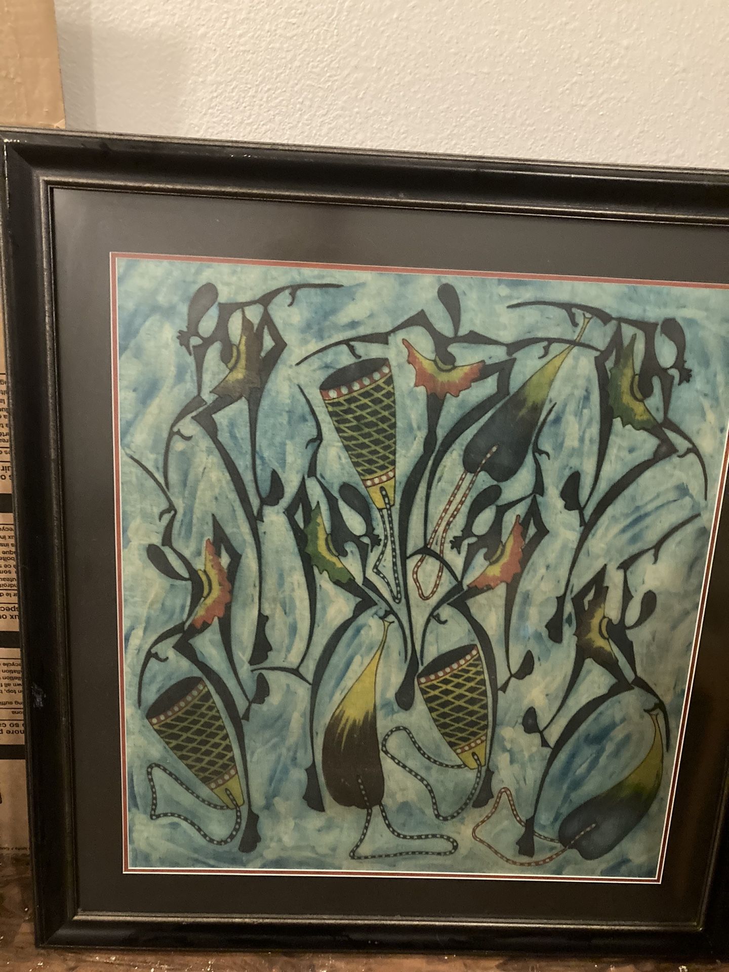 Custom frame with art from Africa. 40”x43”.