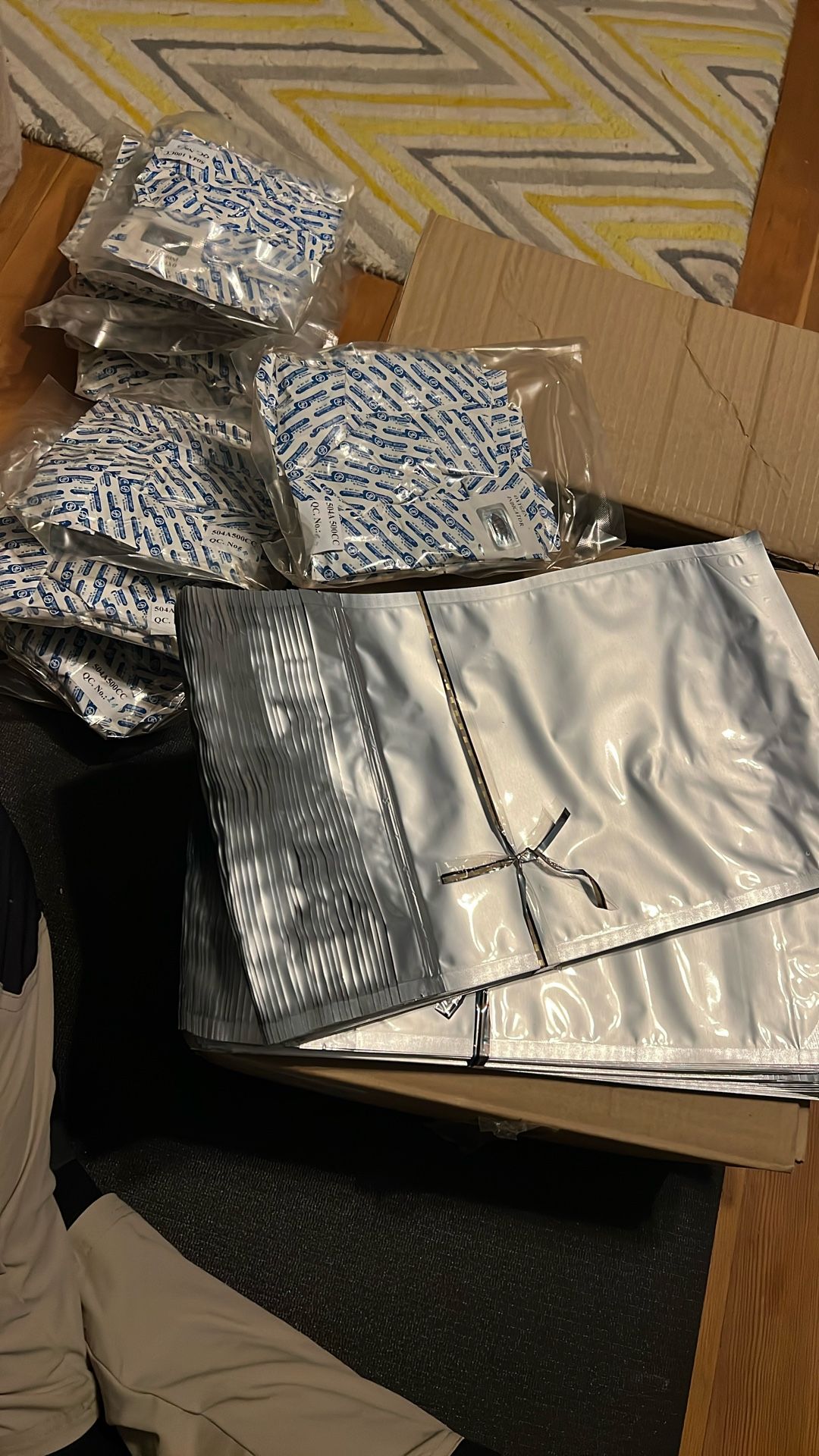 Just what you see in the photo , mylar bags and oxygen absorbers