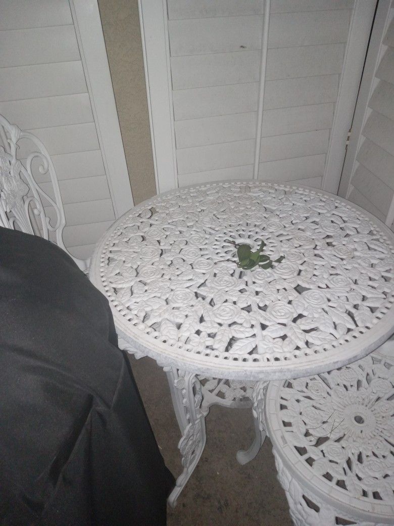 3 Piece White Paint Metal Bistro Set Table and Two Chairs