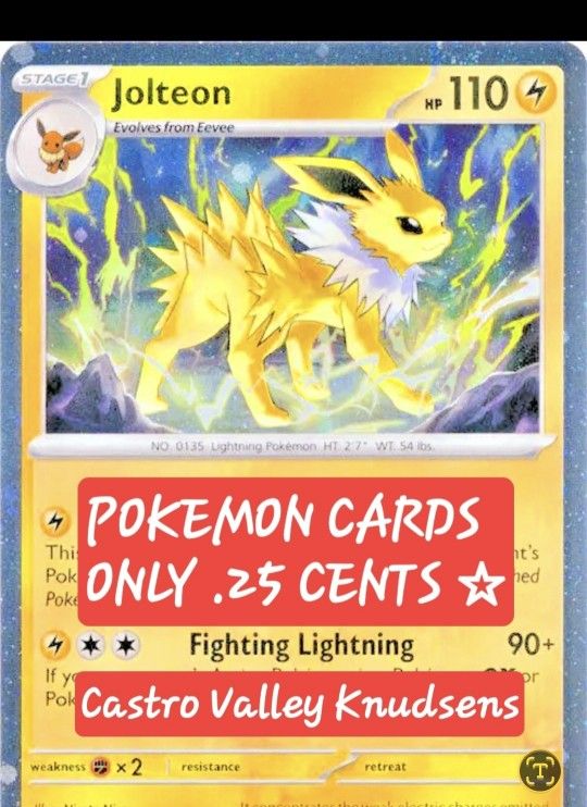 Only .25 CENTS POKEMON CARDS IN CASTRO VALLEY KNUDSENS ICE CREAMERY 3323 castro valley blvd IN THE HALLWAY. .25 CENT QUARTER MACHINES. SPORTS CARDS TOO.. CHANCE FOR POKEMON HOLO'S !! COME TO ICE CREAMERY AND GET SOME GREAT HOMEMADE ICE CREAM TOO.. LOOKING FOR ANY SPORTS CARDS?? RAIDERS. 49ERS. WARRIORS. CURRY MAXX CROSBY. NICK KURTZ. ETC. CONTACT ME. I HAVE THEM ALL CHRIS 1ST AND GOAL SPORTS CARDS