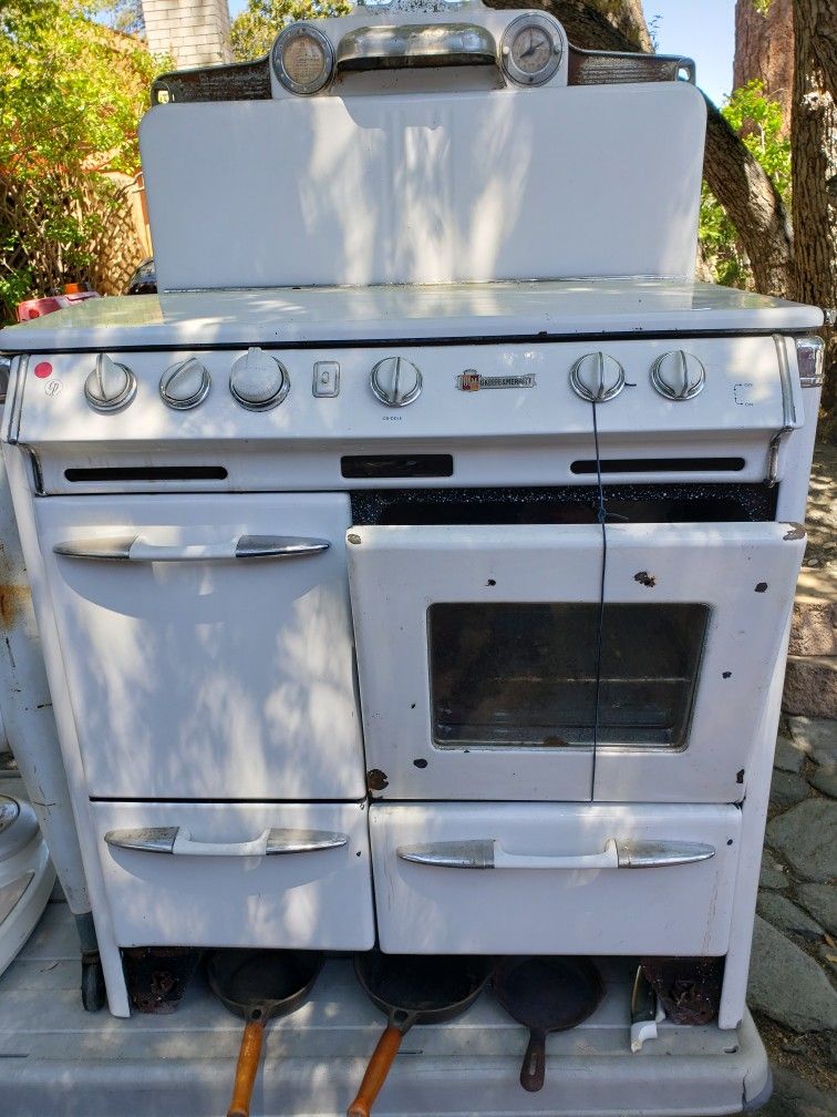Great to resore or for parts. Original gages and salt and pepper shakers still present! Unusual to have these pieces available! Parted out can yield good return.