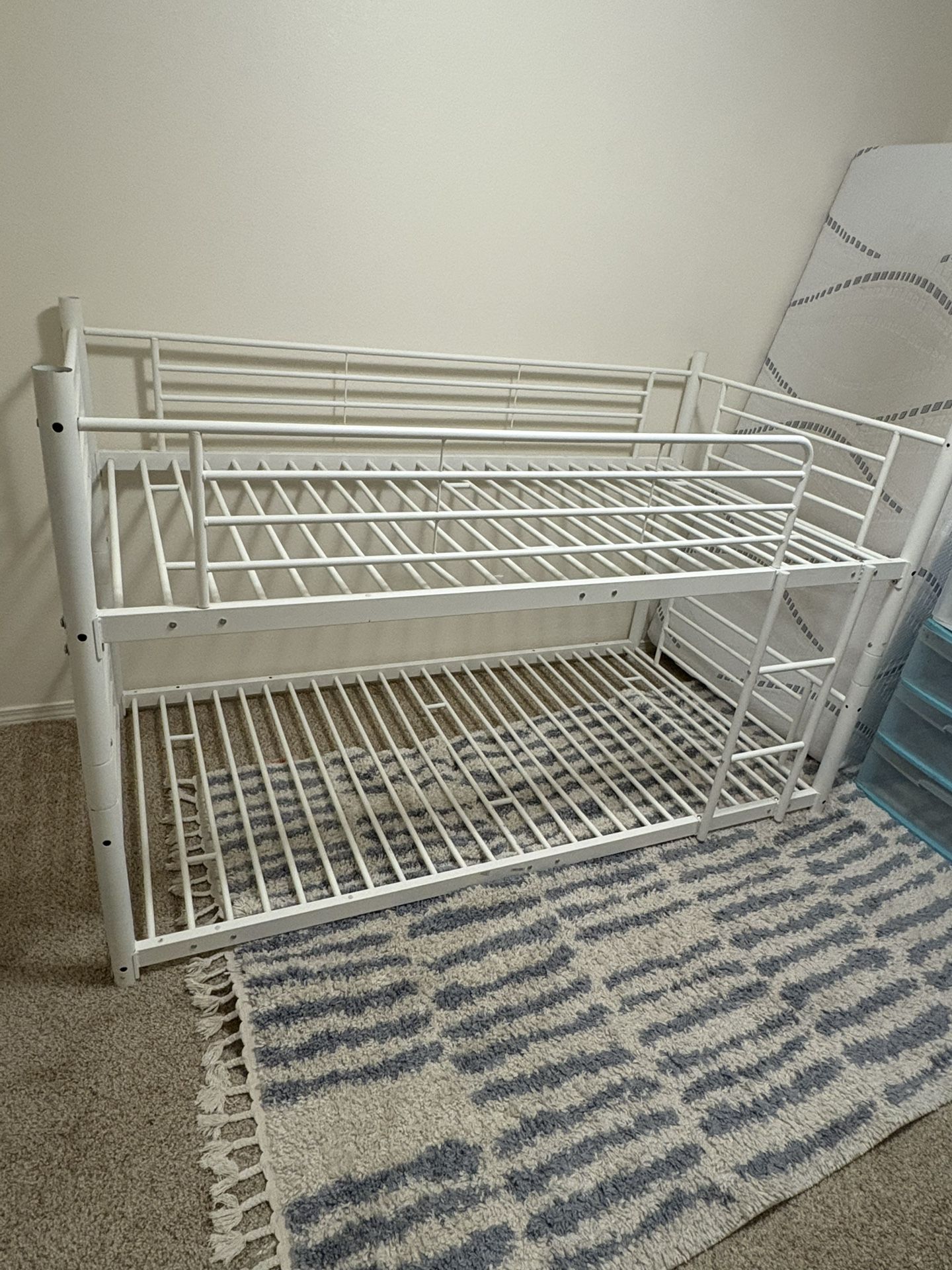 Low to the ground twin over twin bunk bed, excellent condition all pieces there and no broken bars. No holds please, must pick up