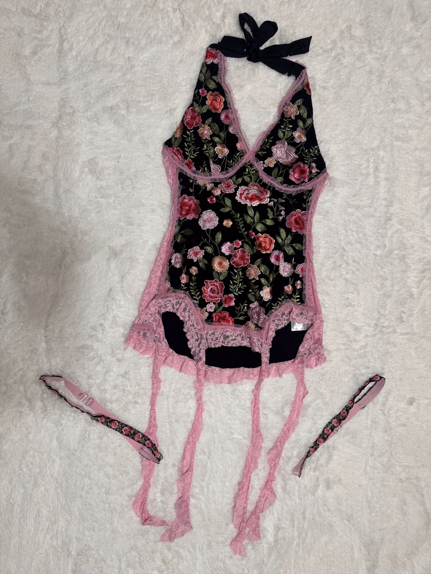 New 1x black embroirderd floral dress boho festival rave flower lace short