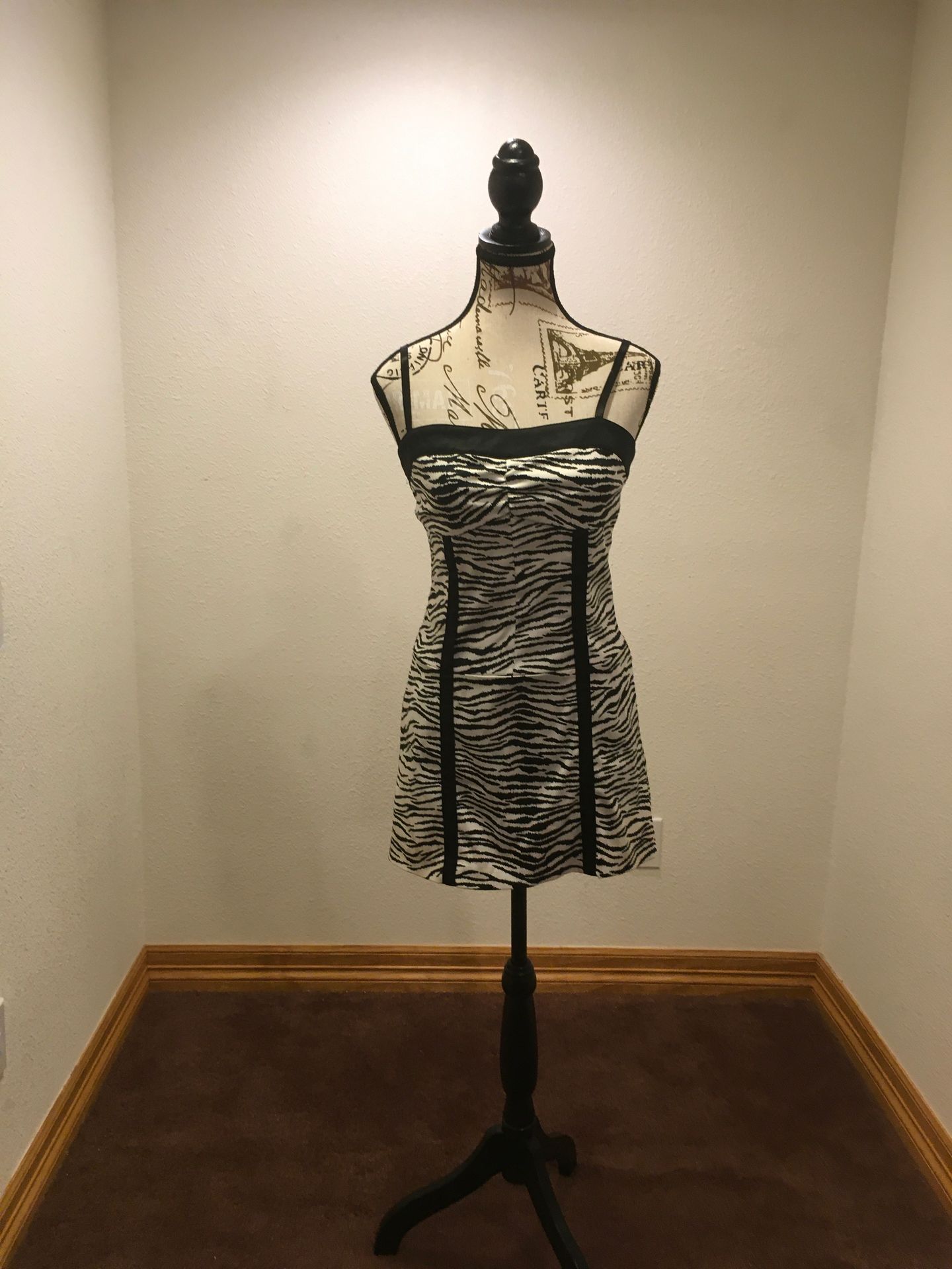 Stylish zebra print dress with black accents size 5 if you are interested buying it, I want serious buyers no scammers allowed only serious buyers