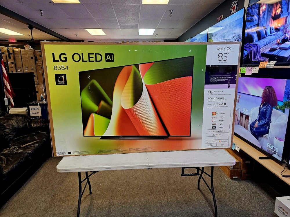 IN STOCK NOW LG 83" MODEL OLED83B4 SEVERAL AVAILABLE – OPEN BOX IN LIKE NEW CONDITION AND IN THE BOX COMPLETE WITH ACCESSORIES. 6 MONTH WARRANTY AND LONGER WARRANTIES ARE AVAILABLE. THE PRICE IS FIRM. 83" 4K OLED HDR10 AND DOLBY VISION SMART APPS AIR PLAY AND PHONE MIRROR NATIVE 120HZ, HDMI 2.1 AND VRR RTINGS SCORE 8.1 BRIGHTNESS 509 ONLY $1299 PLUS TAX - FIRM PRICE CASH AND ZELLE FOR THIS PRICE. DEBIT, CC SMALL CHG – FIRM PRICE WE OFFER PAYMENT PLANS WITH ACIMA AND SNAP - MSG FOR DETAILS TAKE IT HOME FOR AS LOW AS $39 ON APPROVED PAYMENT PLAN - MSG FOR DETAILS MANCAVE ENTERTAINMENT 5930 W GREENWAY RD SUITE 22 GLENDALE 85306 MON – FRI 10 AM TO 7 PM SAT – 10 AM TO 6 PM SUN – 11 AM TO 5 PM IN BUSINESS FOR 12 YEARS A PLUS RATED BBB MANY 5 STAR REVIEWS ON GOOGLE, FACEBOOK AND YELP A REAL BUSINESS AND REAL STORE AIR CONDITIONED AND COMFORTABLE PLENTY OF PARKING