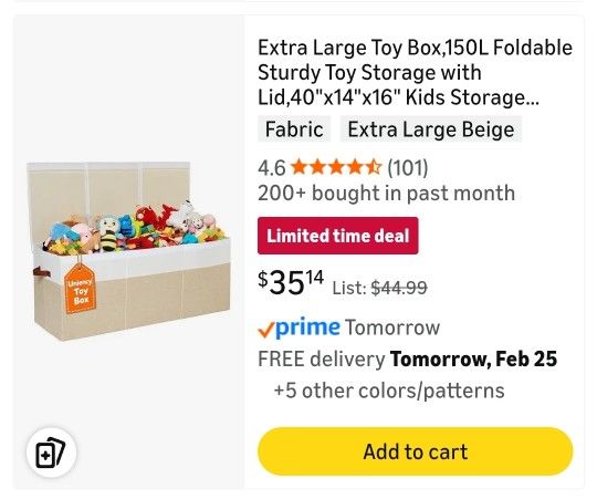 Extra Large Toy Box,150L Foldable Sturdy Toy Storage with Lid,40"x14"x16" Kids Storage Organizer, Toy Chest for Boys&Girls,for Living Room,Nursery,Bedroom,Playroom,Large Capacity Toybox(Beige)