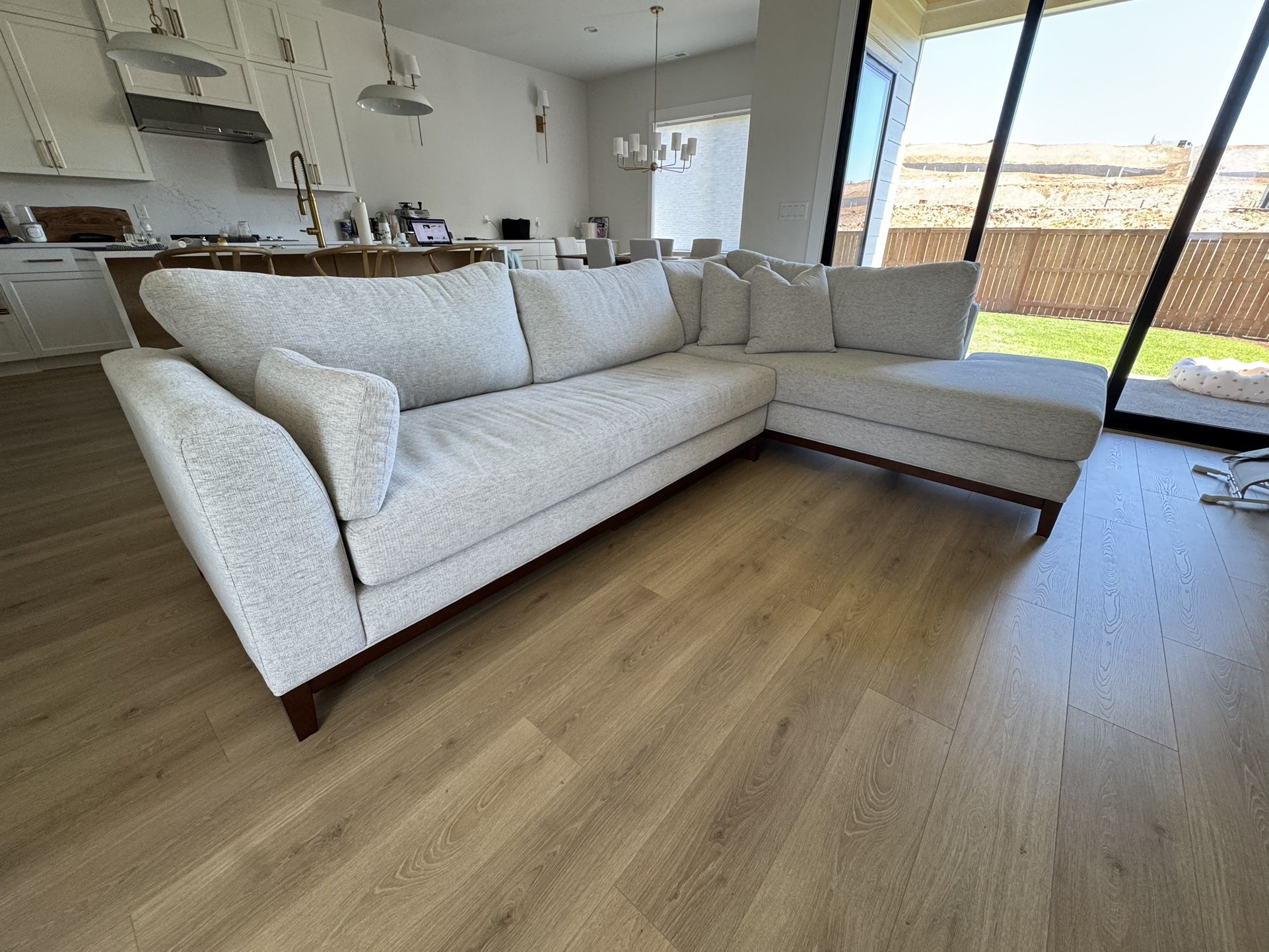 I’m looking to sell my Mid Century Modern Couch made by Stanton. It is about a month old and in excellent shape. We are looking to redesign our living room and want to change the lay out. The dimensions of the couch are 119” Long and the Chaise Section is 82”.