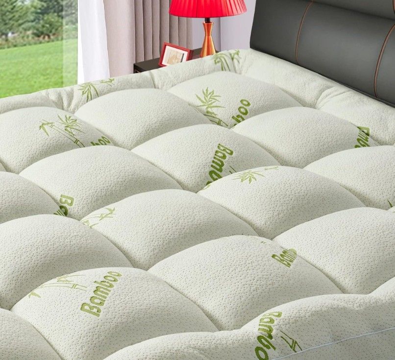 Cubrecolchón de viscosa prémium hecho de bambú tamaño Queen para dolor de espalda, 1200 GSM, acolchado extra grueso, funda de colchón superior con bolsillo profundo de hasta 21 pulgadas (60 x 80