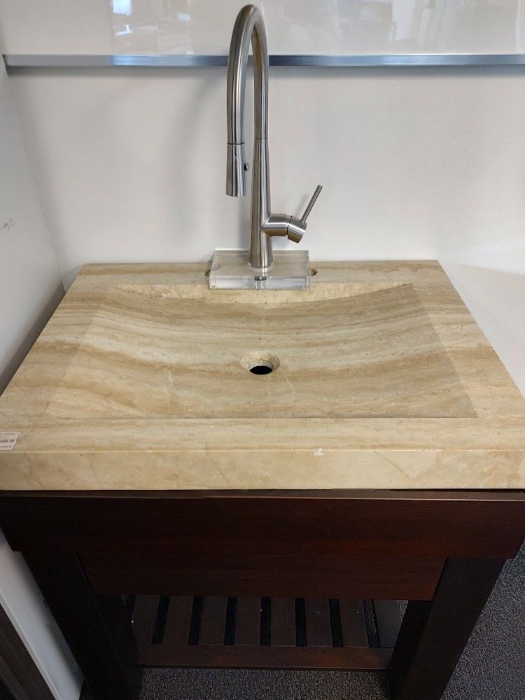 Ryvyr SVT300TR Rectangular vanity top is constructed of travertine, providing a sturdy feel and a clean appearance. 3" TOP x 30" Width x 21 3/5" Depth MSRP $2448 Our price $999 Showroom display Outta Box/New Contact Mike