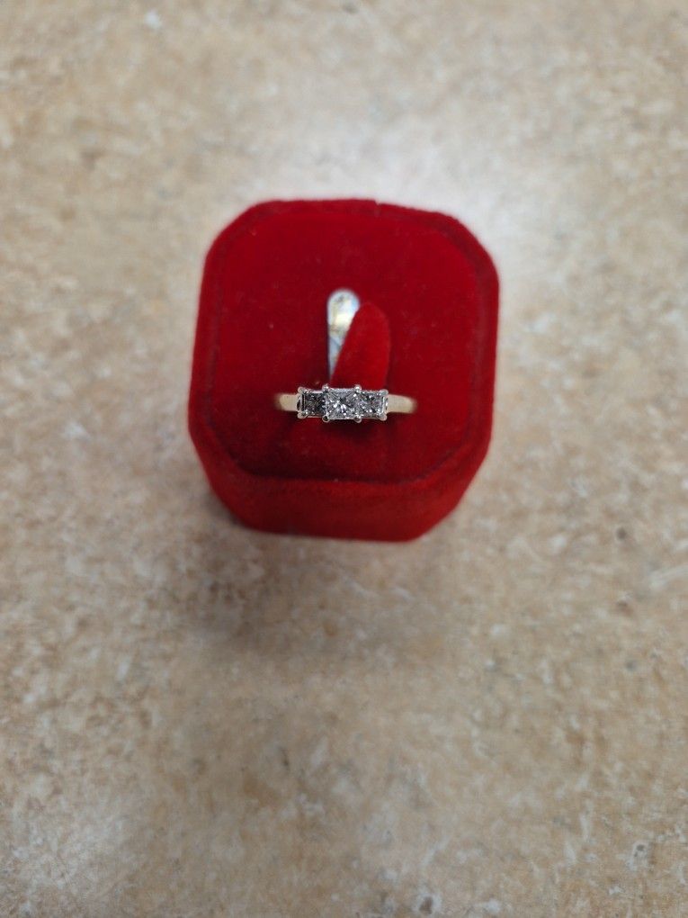 14k White Gold And Platinum 3 Diamond Princess Cut Ring