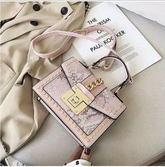 Luxuy Pink Silver Gold Trim Unbranded Purse Handle & Strap Faux Snakeskin Look