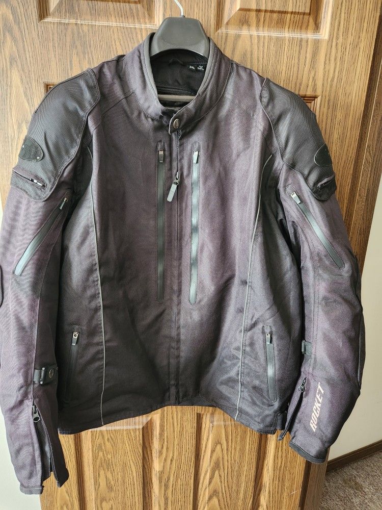 Joe Rocket Turbulent jacket. 600D fabric. Full quilted zip-out liner, including sleeves. CE armor. GPX2 gauntlet gloves. Jacket and gloves are 2XL. Get both jacket and gloves as a package deal. Bargain!
