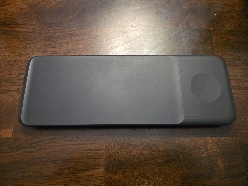 Experience efficient charging with this sleek, black wireless charging pad. Samsung brand that is fast charging capable and able to charge a phone, watch, and buds all at once. USB charger port C, up to 9.0 V. Lights on the device let you know when electronics are fully charged by turning green.