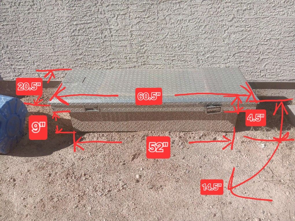 Truck bed box, I do not know what brand it is.. I have no use for it. No keys, right handle needs re-installed, lid does work.. $65.00 O.B.O FCFS NO HOLDS