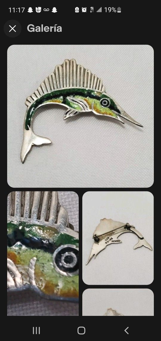 Vtg Taxco Mexico Sterling Silver 925 & Abalone Marlin Sword Fish Pin Brooch 1.5