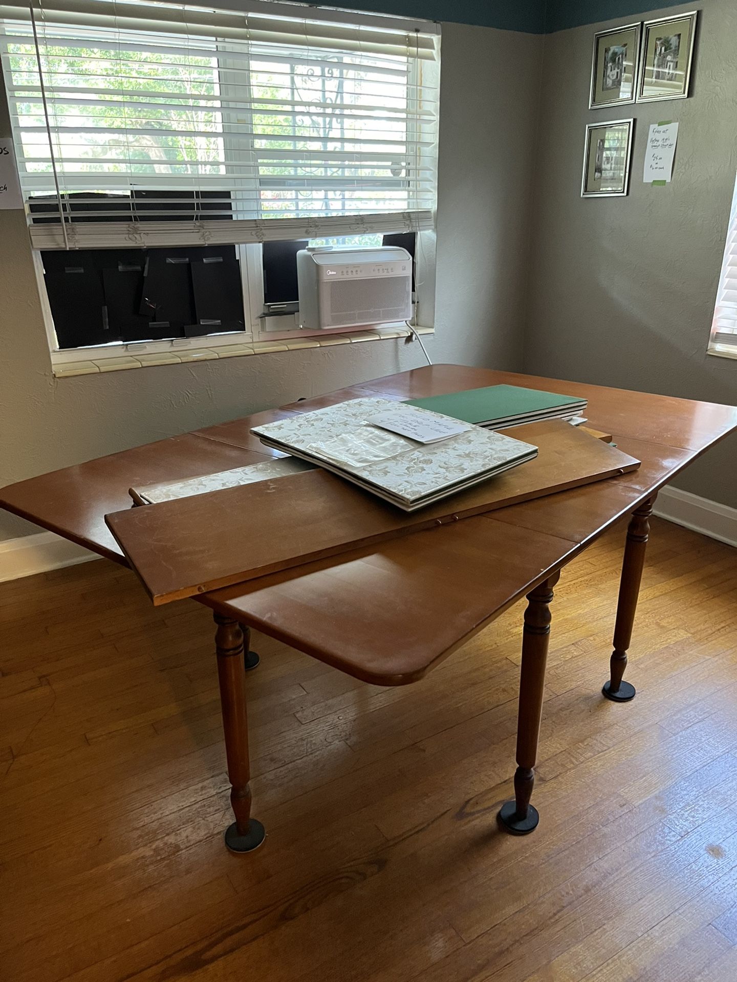 Double drop leaf table with 2 leaves. And custom table protection pads. Solid maple. Antique. cash only. Must pick up.