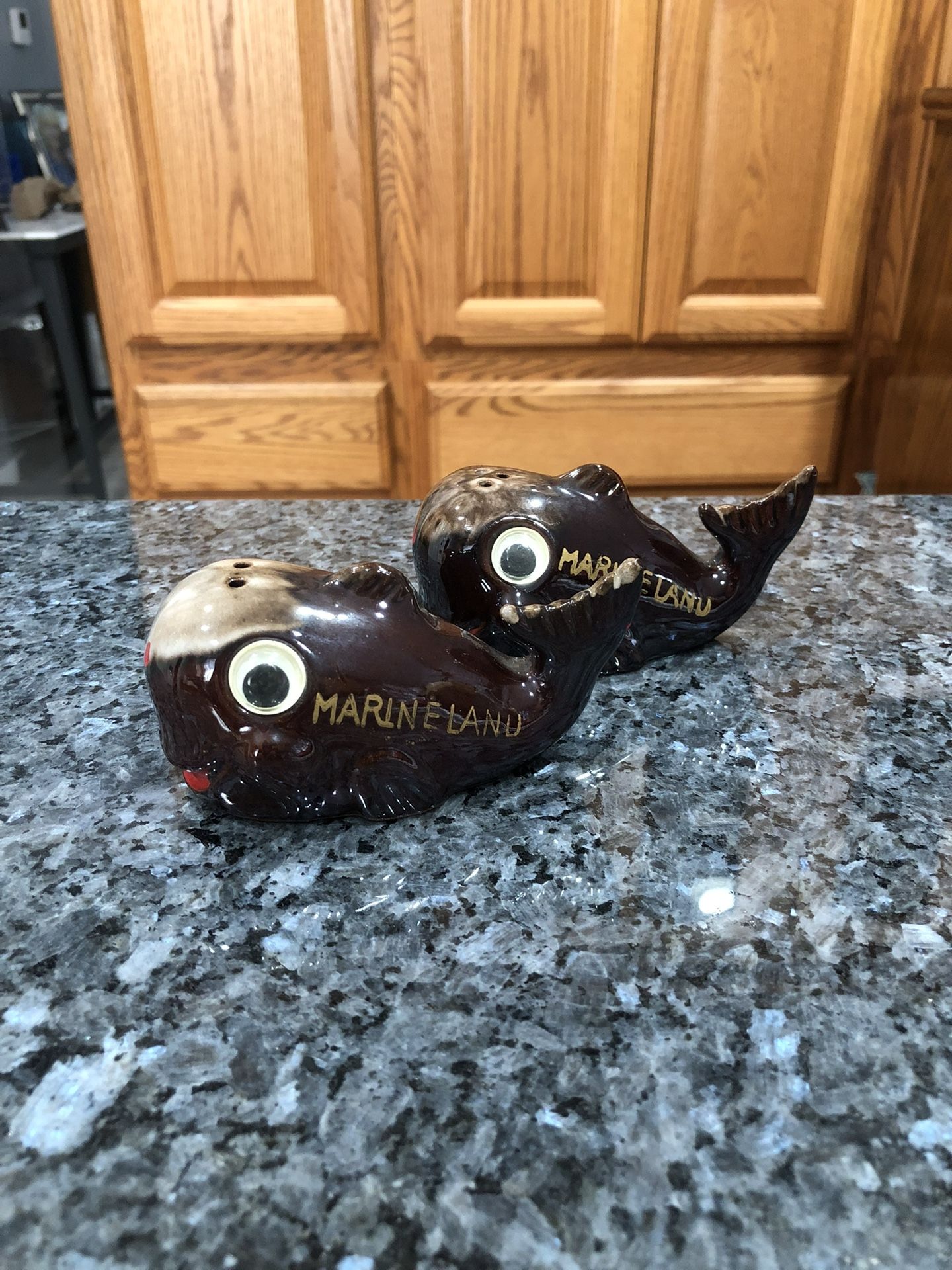 Vintage EFCCO Japan MARINELAND Souvenir Whale Salt & Pepper Shakers. Size 4 inches wide and 2 inches tall. With stoppers. . No chips or cracks, just a few minor scratches and paint wear. Please see pictures. Has been on display in a cabinet with a very large salt and pepper shakers collection. Smoke free home