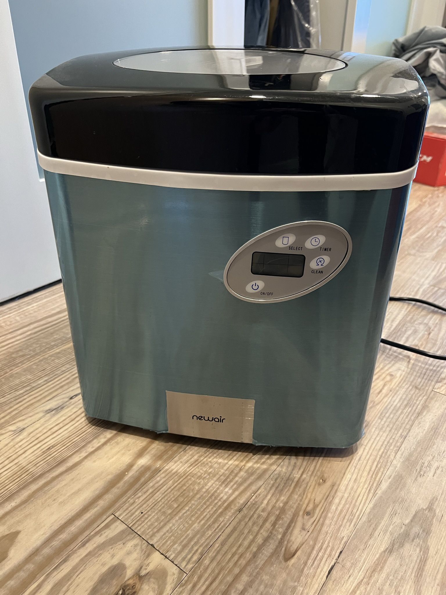 Brand: NewAir 50-Ib Drop-Down Door Portable/Countertop Bullet Ice Maker (Stainless Steel) Lightly used, works great, looking to clear up some space in my kitchen.