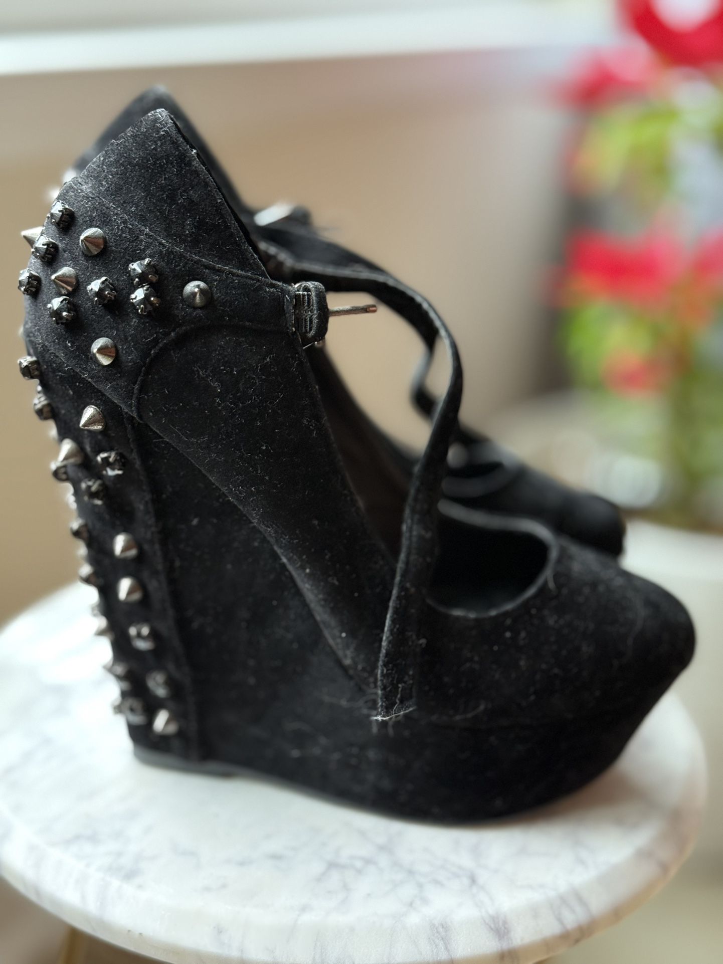 Womens Shoedazzle Black Suede Platform Shoes With Studs New Size 5.5 Comes with box