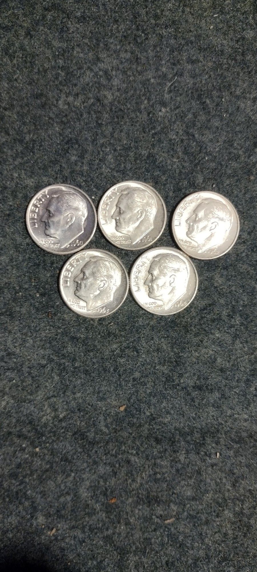 Here is a small bundle of the Roosevelt dimes 1960 thru 1964 all from the Philadelphia Mint totally Gem mint uncirculated, I have a little more but from the 1950'S in the same condition and I can post if there is an interest in these , if not back into the book again, make a good offer and they are yours if not I will understand. Locals preferred for the pick up . Thank you for looking
