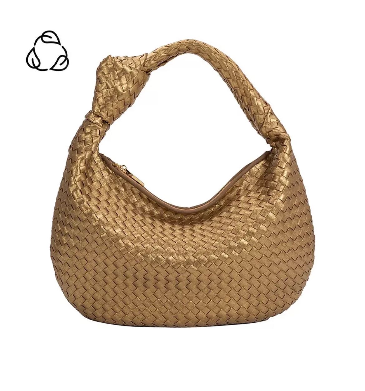 Brand new, compare to retail price of $150!! This stunning handbag offers a perfect blend of style and sustainability. Crafted from high-quality, cruelty-free materials, it features a spacious interior, multiple pockets, and a buttery feel. Embrace fashion with a conscious choice. Recycled Vegan Leather 15"Wx 9"H x 2.7"D Handle Drop: 4" Zipper Closure Gold-Tone Hardware Interior Zip & Slot Pockets OEKO-TEX Certified Lining Fits up to a standard-size tablet Product No. XP1020M-BZ Conscious Fashion! Quality, craftsmanship, affordable luxury are the trademarks of Melie Bianco. Premium vegan bags and accessories are sculpted with Love and made cruelty free.
