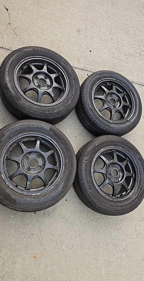 HX oem 14" wheels used good conditions 2 out 4 tires good asking 350 negotiable serious buyers only wheels located in Montebello