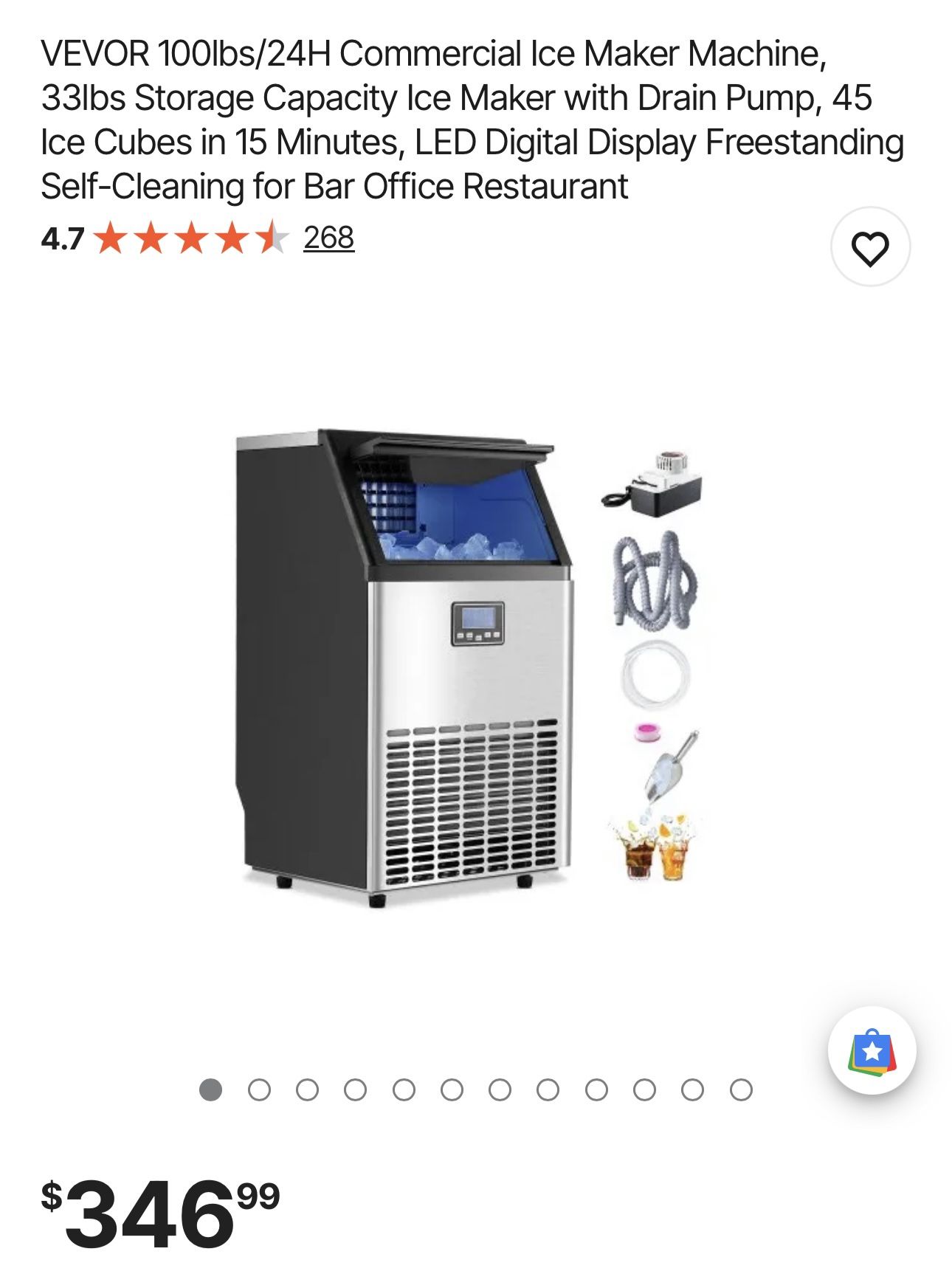VEVOR 100lbs/24H Commercial Ice Maker Machine, 33lbs Storage Capacity Ice Maker with Drain Pump, 45 Ice Cubes in 15 Minutes, LED Digital Display Freestanding Self-Cleaning for Bar Office Restaurant