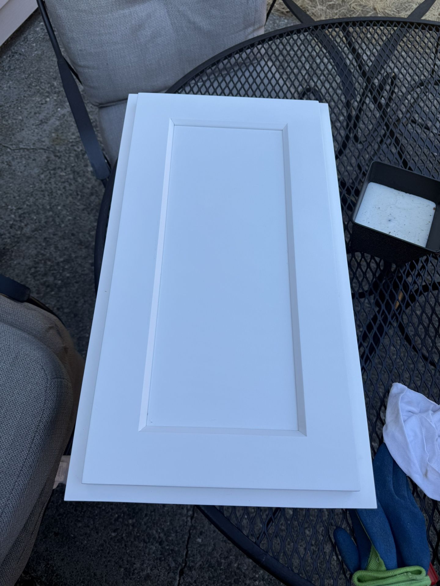 22 3/8” x 11 3/8” Brand new, cabinet company sent the wrong size. No holes drilled in it at all