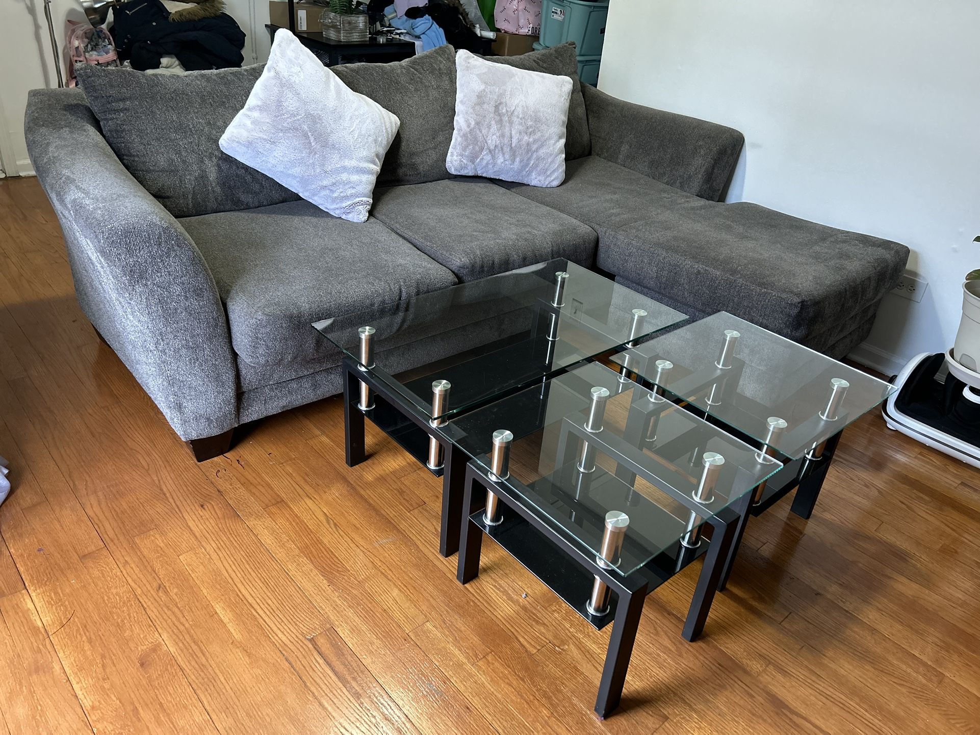 Bought the couch 2 years ago, never really used it I was never home always working and tables are semi used as well. Take all or if you’d like just the living room table set or couch. Nothing wrong with it, just moving to a smaller place. Couch- $500 Tables- $100 Or best offer!!