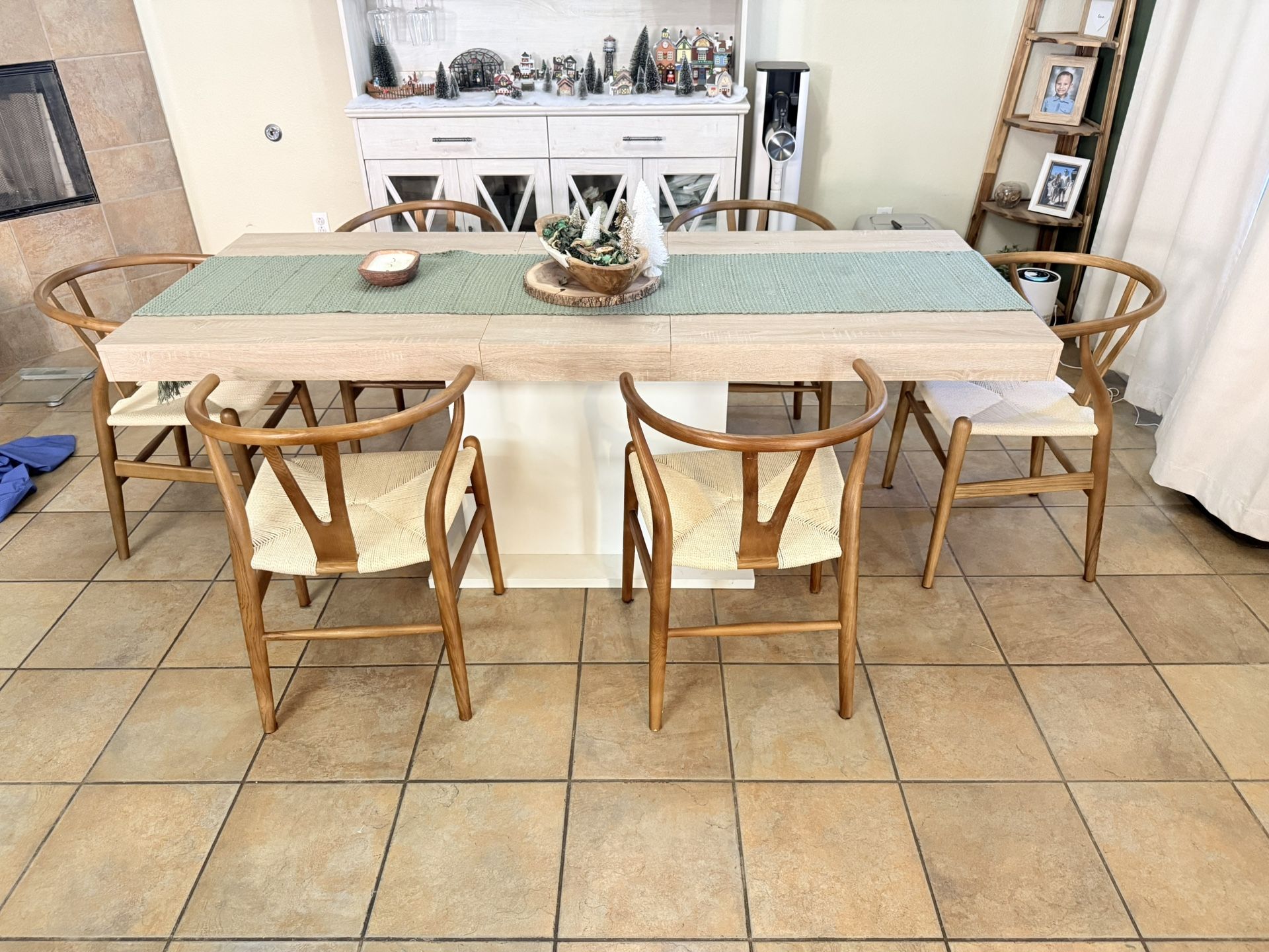 Basically brand new, Only the table is for sale. Bought for 750$ from bed bath & beyond about 2 months ago, We’re moving and going with different colors.