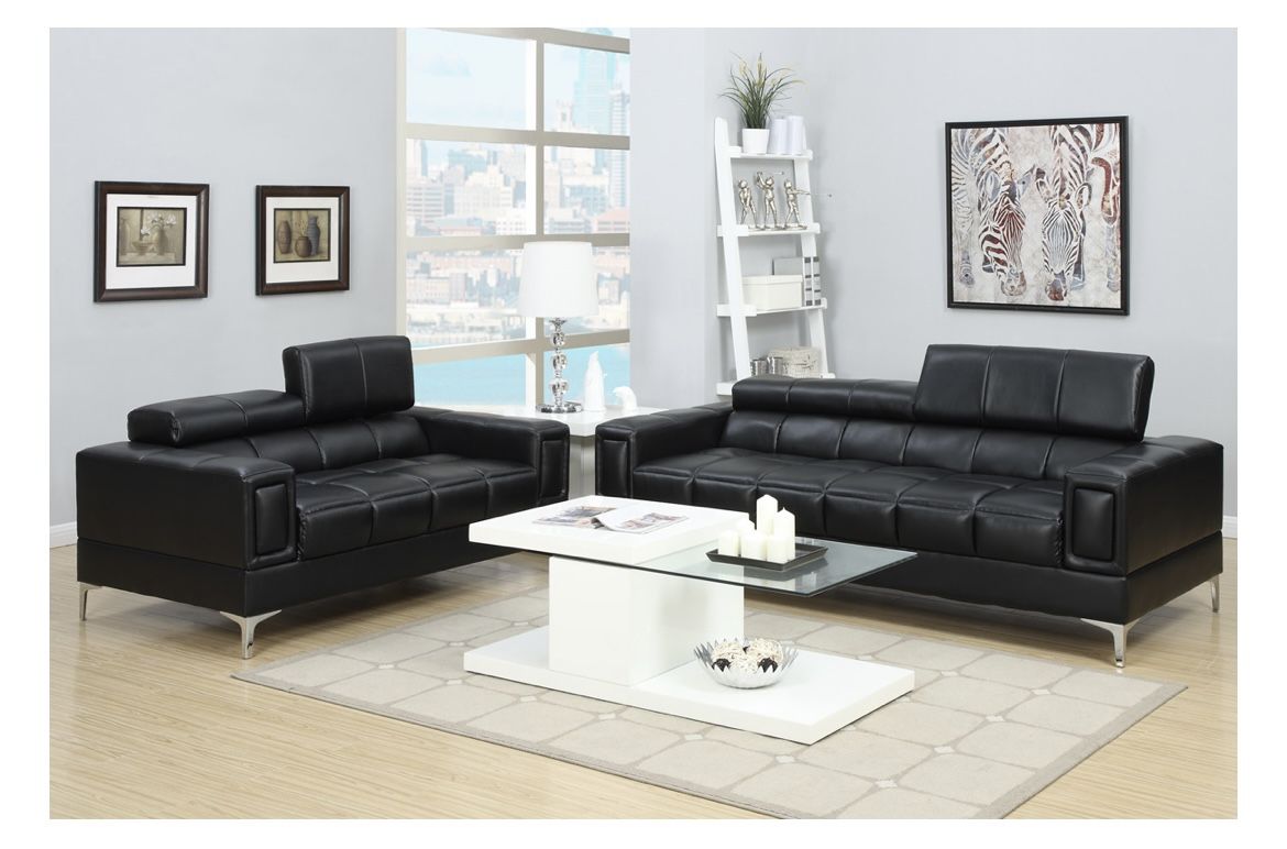 Black Faux Leather Sofa And Love Seat Set (Free Delivery)
