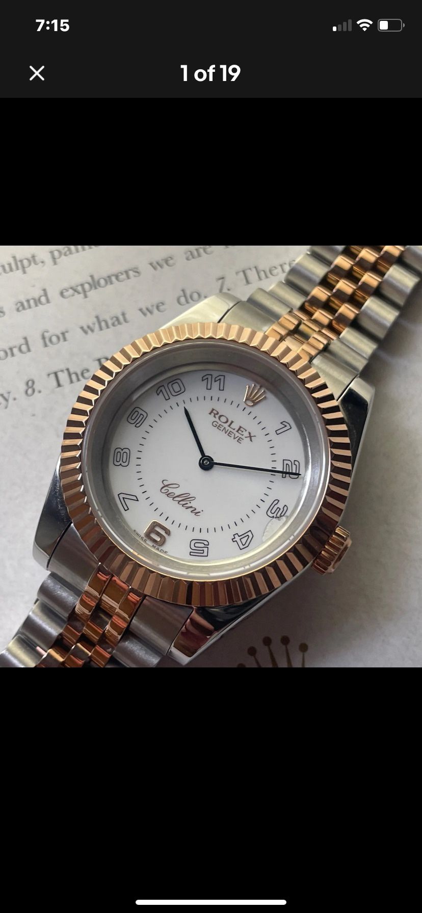 40mm Rose gold and Steel case, sapphire glass, Cellini movement with original-authentic white Rolex dial…. Made by jeweler in Chicago… I have only worn less than a dozen times in the 3 years I’ve had it… great looking and heavy classy piece. Will entertain a reasonable offer… Thank you!!