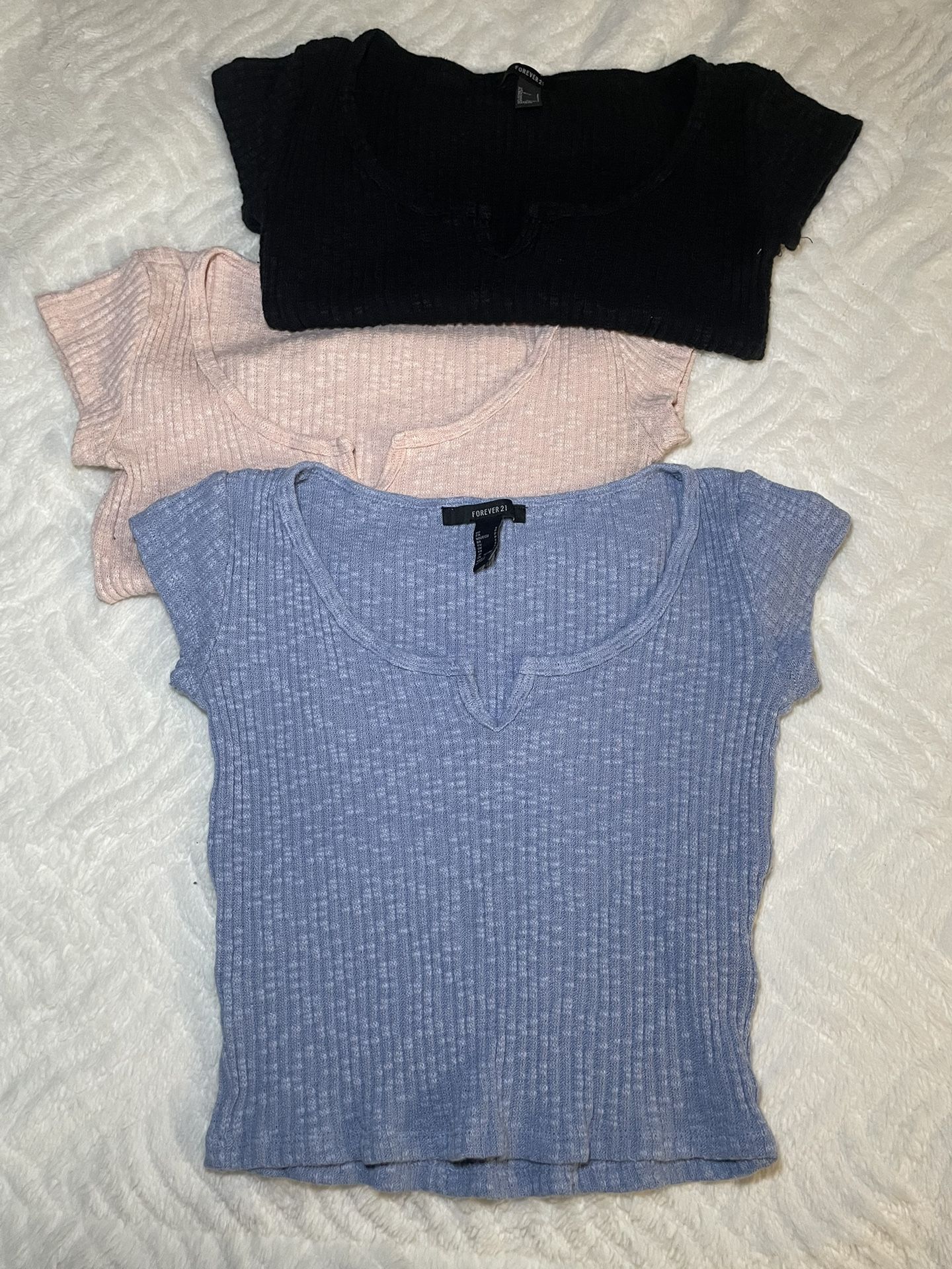 3 pack of black, pink, & blue forever 21 crop tops size: small