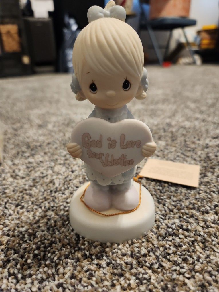 Precious Moments 1981 God is Love Dear Valentine Figurine VTG Girl Heart E-7154