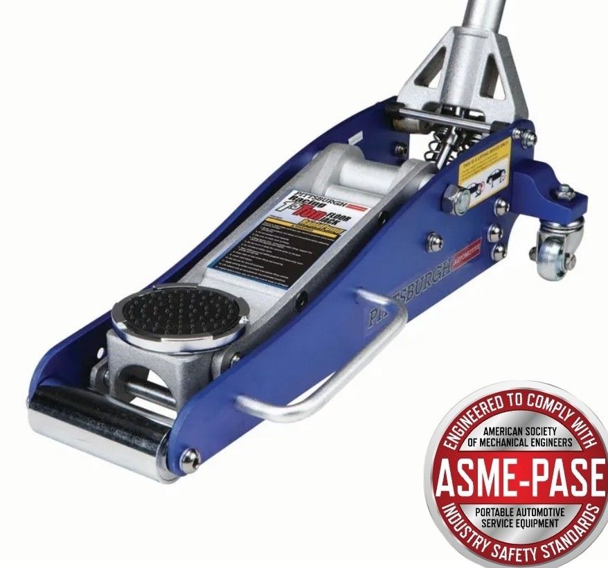 Pittsburgh 1.5 ton (3000 pounds) low profile aluminum racing floor jack, with quick lift (3.5 pumps), significant height rise, and fast/immediate release to lower. Hardly used in two years, with very few/minor scuffs, though rubber seat is a little torn.