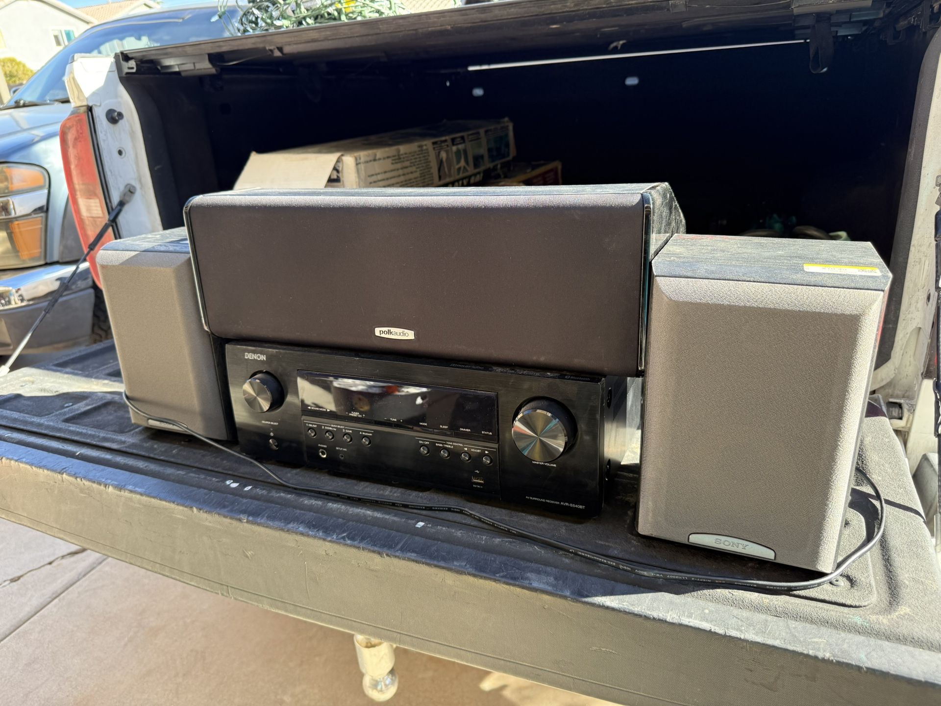 All worked great when they were last used about a year ago. (1) Denon AV Surround Receiver AVR-S540BT (2) Sony SS-MB150H (1) Polk Audio CS10 Black