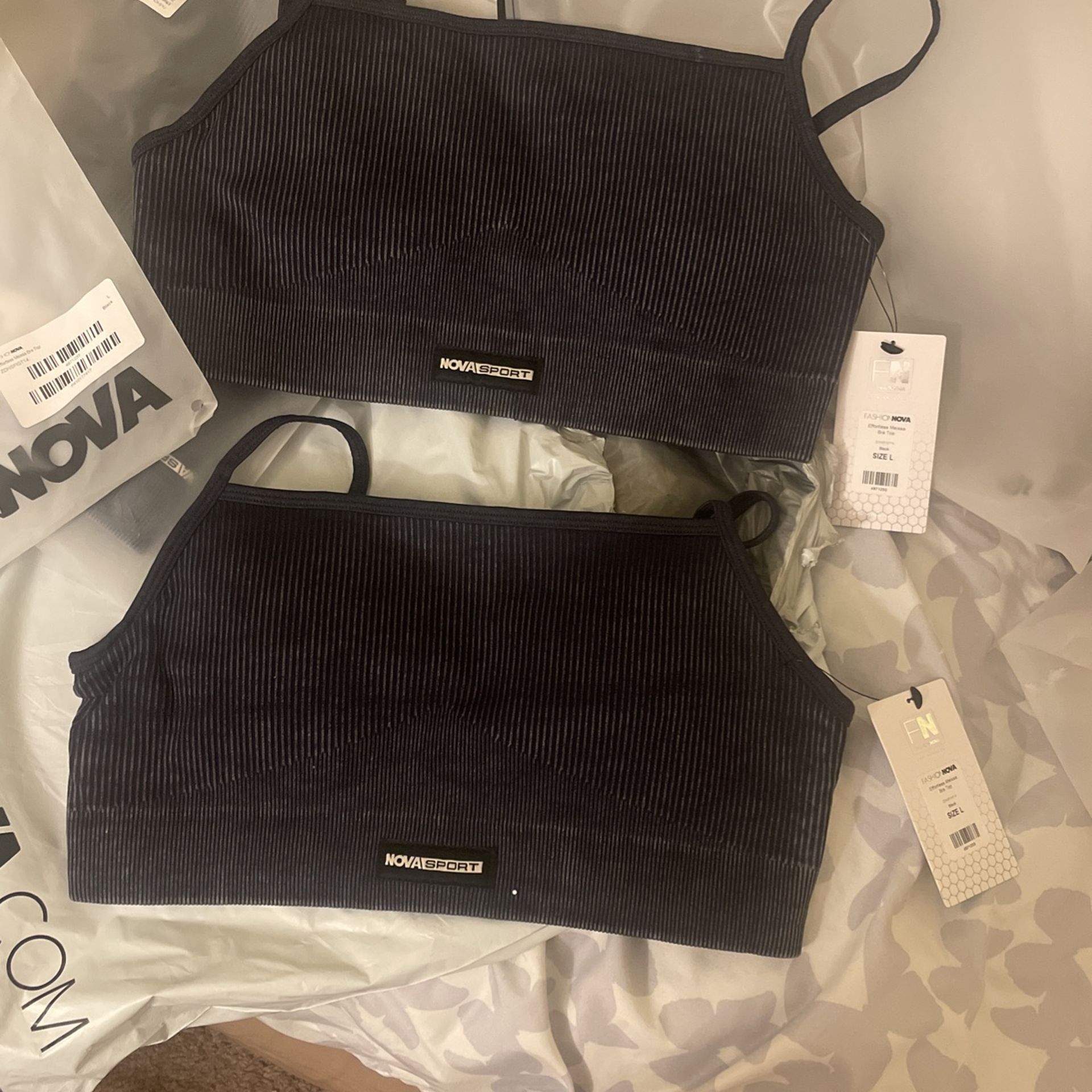 Just received my fashion nova shipment today and accidentally ordered 2 of the same sports bras/ only selling one . Super thick good Quality. Gives you a boob lyft. Im normally a medium but sized up to large bcus of material. Brand new w tag. I bought the matching pants which you should order to match ! Super cute and comfy ! And shapes you very well