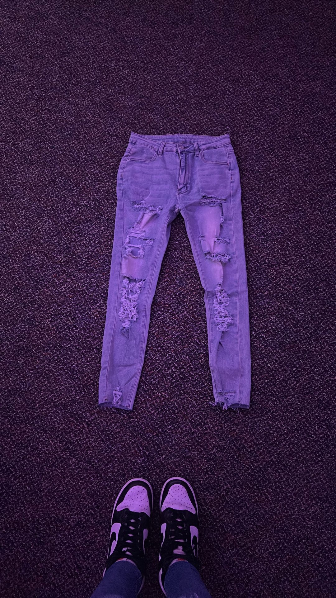 these light wash, denim, ripped jeans, are a xs, stretch and simple. tried them on didn’t like them, took them off and never been worn again. i paid 20 but ill do 15 🤷♀️