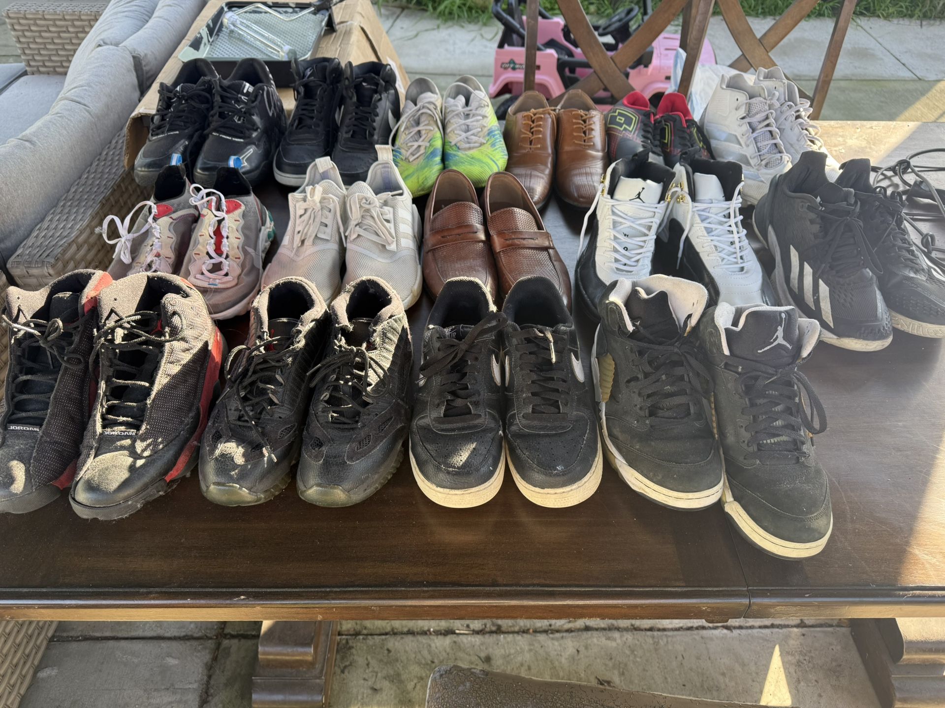 Used shoes dusty been in the closet for a while. Different brands, different shoes size. Some size 8, 8.5, 10, 11,11.5 Make an offer take everything don’t have use for them anymore.