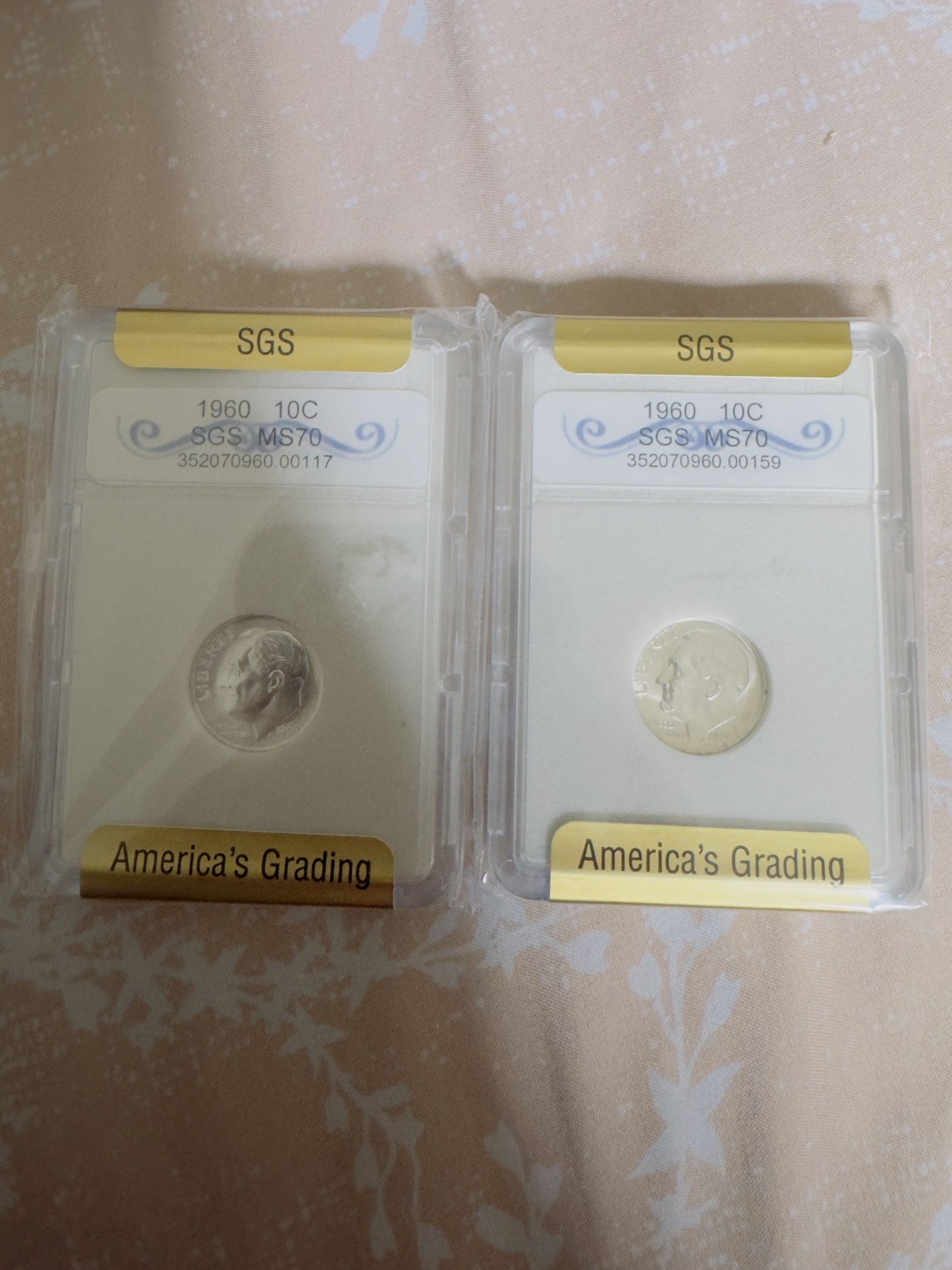 2 Monedas 1960 Silver Dime SGS MS70 - Slabbed - Solo Local Cash $32