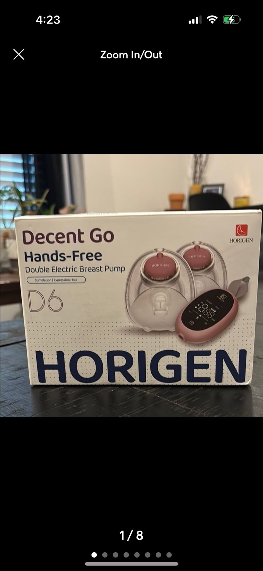 In great condition. Open box. Complete and never used. Nice color! Horigen Decent Go hands-free double electric breast pump in pink and white. Compact and efficient design.