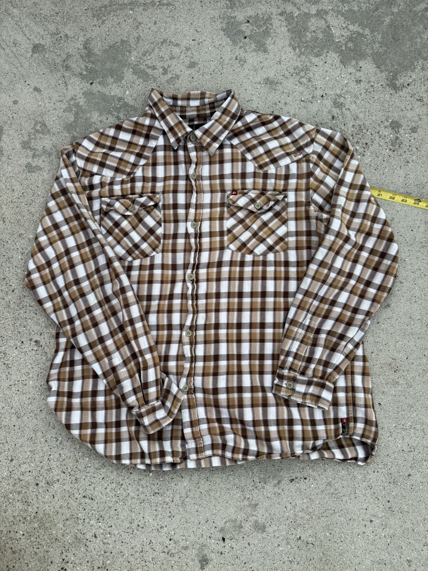 Quiksilver Brown and white plaid button-up shirt size XXL