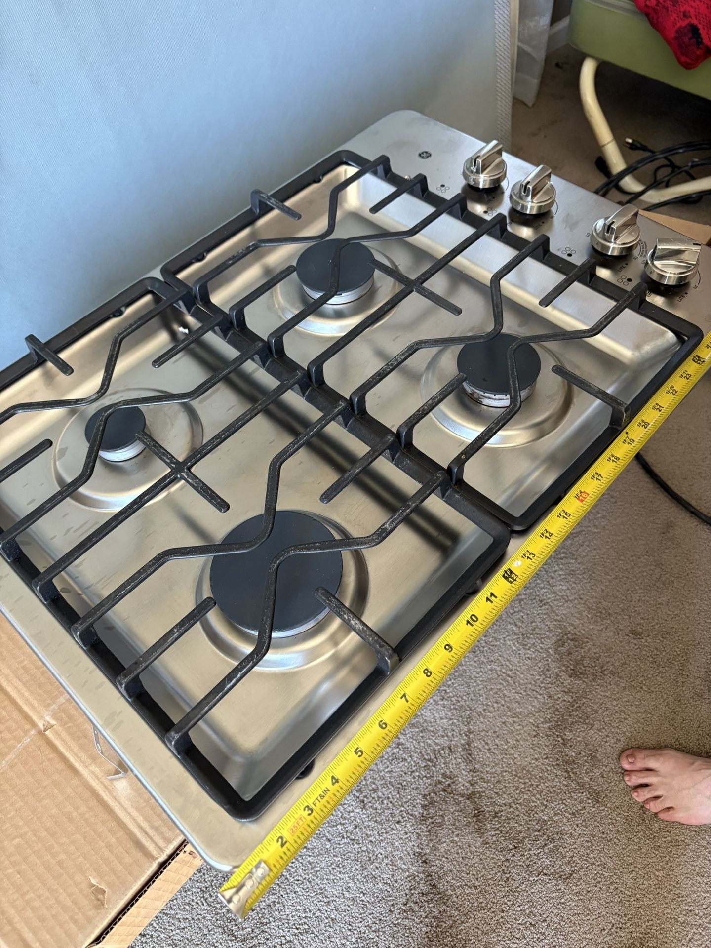 See pics for mesurmentsis a gas stove was just intallded and test but never really used I have 2 different size but both gas