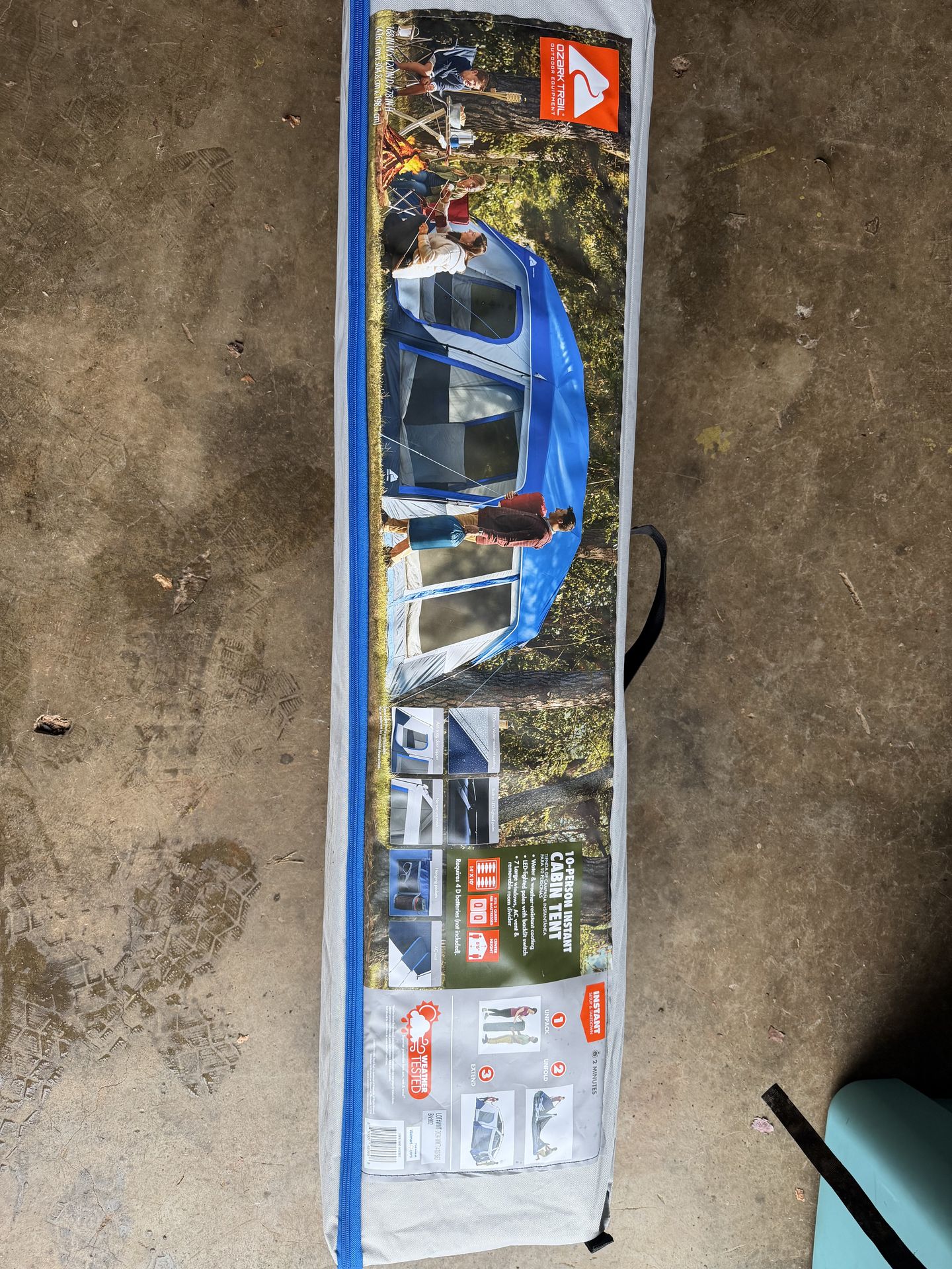 Brand new, never used Ozark Trail 10-person instant cabin tent. Sets up in about 2 minutes. Very spacious, fits 2 queen air mattresses comfortably. Includes built-in LED-lighted poles, 7 large windows, AC vent, hanging storage pockets, and a removable room divider. Weather-resistant and perfect for family or group camping. Size: 14’ x 10’ Center height: 6’6” Retail price: $215 + tax Price: $150 (priced to sell fast) Local pickup only. Serious buyers only.