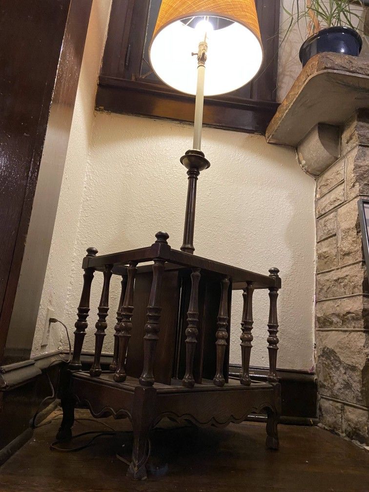 Heavily Discounted!! Rare 1960s Original Frederick Cooper Walnut` Lamp with Magazine Rack serves such a useful purpose as a light and magazine rack. Prolific Lamp Maker from Chicago who was active from the 1920s-1960s. The overall condition of the lamp is very good. Classic and timeless piece which is very useful in small spaces and large spaces. Walnut Constellation. Dimensions: 57”Hx13”Dx19. Elsewhere, this piece is currently on sale online @ Chairish-$695 Etsy-$457.00 (no lamp shade) First Dibs-$650 Lamps are still made under his brand name with prices averaging $2,000.00