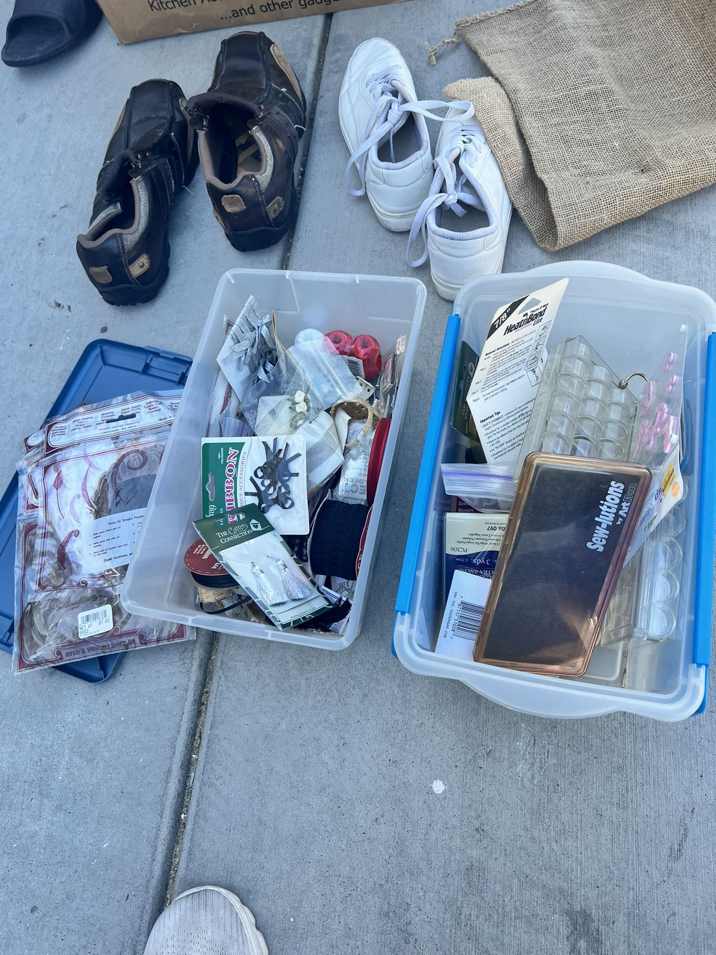A lot of misc sewing items. Lots of fabric, flannel, buttons, pins and batting.