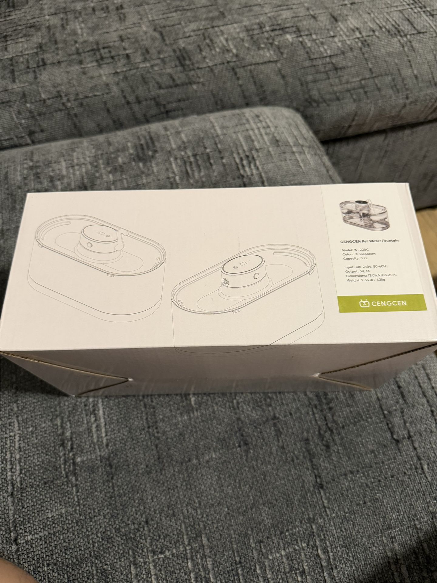 Cat Water Fountain Cordless, 108oz/3.2L Cengcen Wireless Pet Water Fountains Battery Operated 5000mAh, Chew-Proof Charging Cable with Adapter, Stainle
