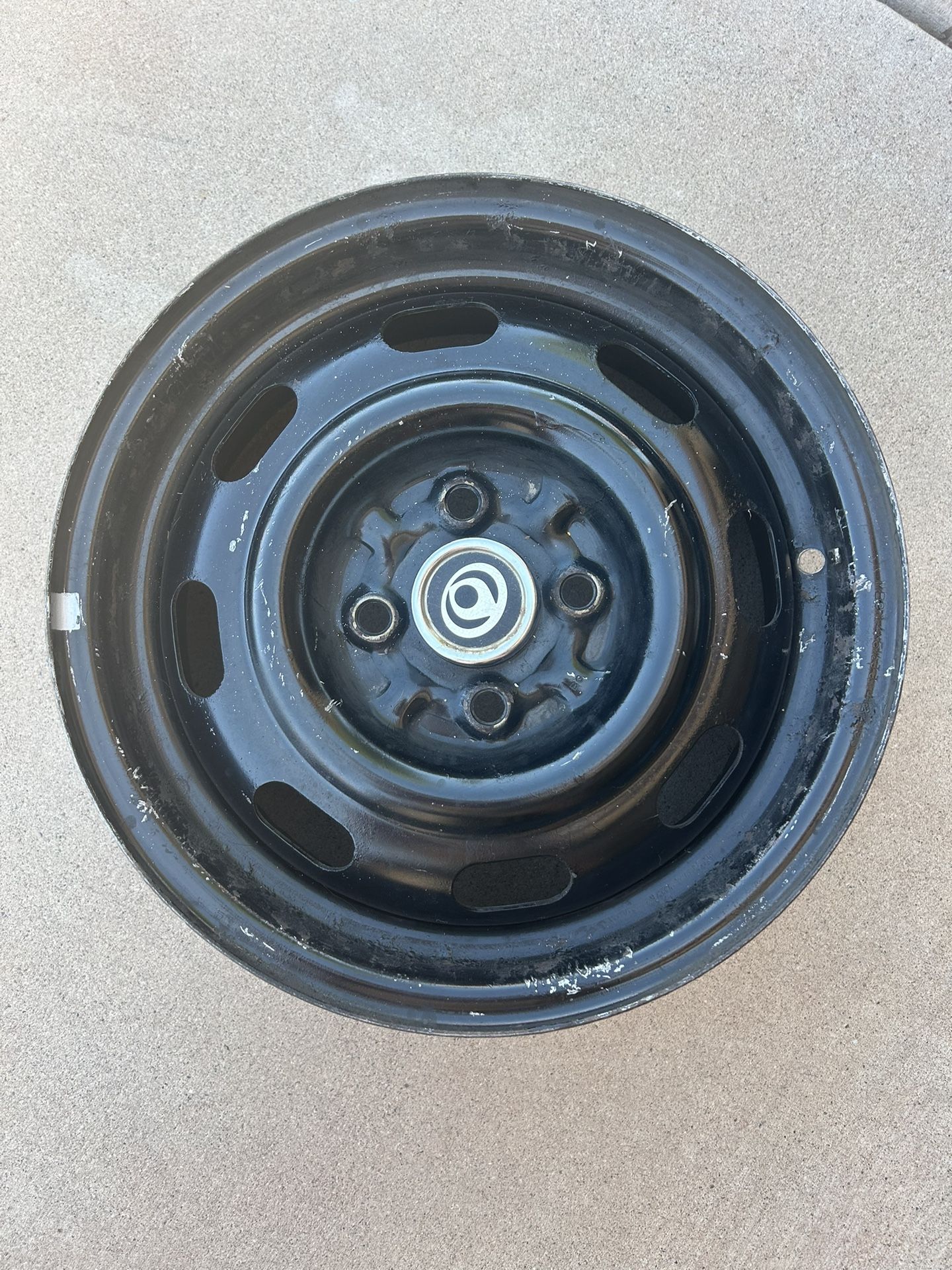 Straight OEM Mazda Miata 14x5.5 steel wheel with two good center caps. Good for spare