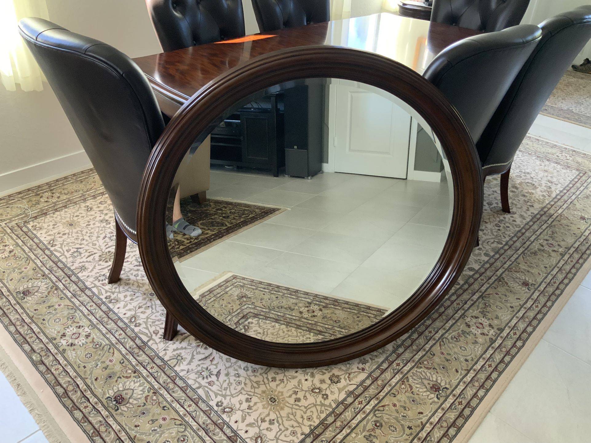 Large mirror from American Drew - 42 inches x 42 inches - beveled mirror - mahogany wood frame - strong and heavy - in pristine shape Value of $599 at Macy’s